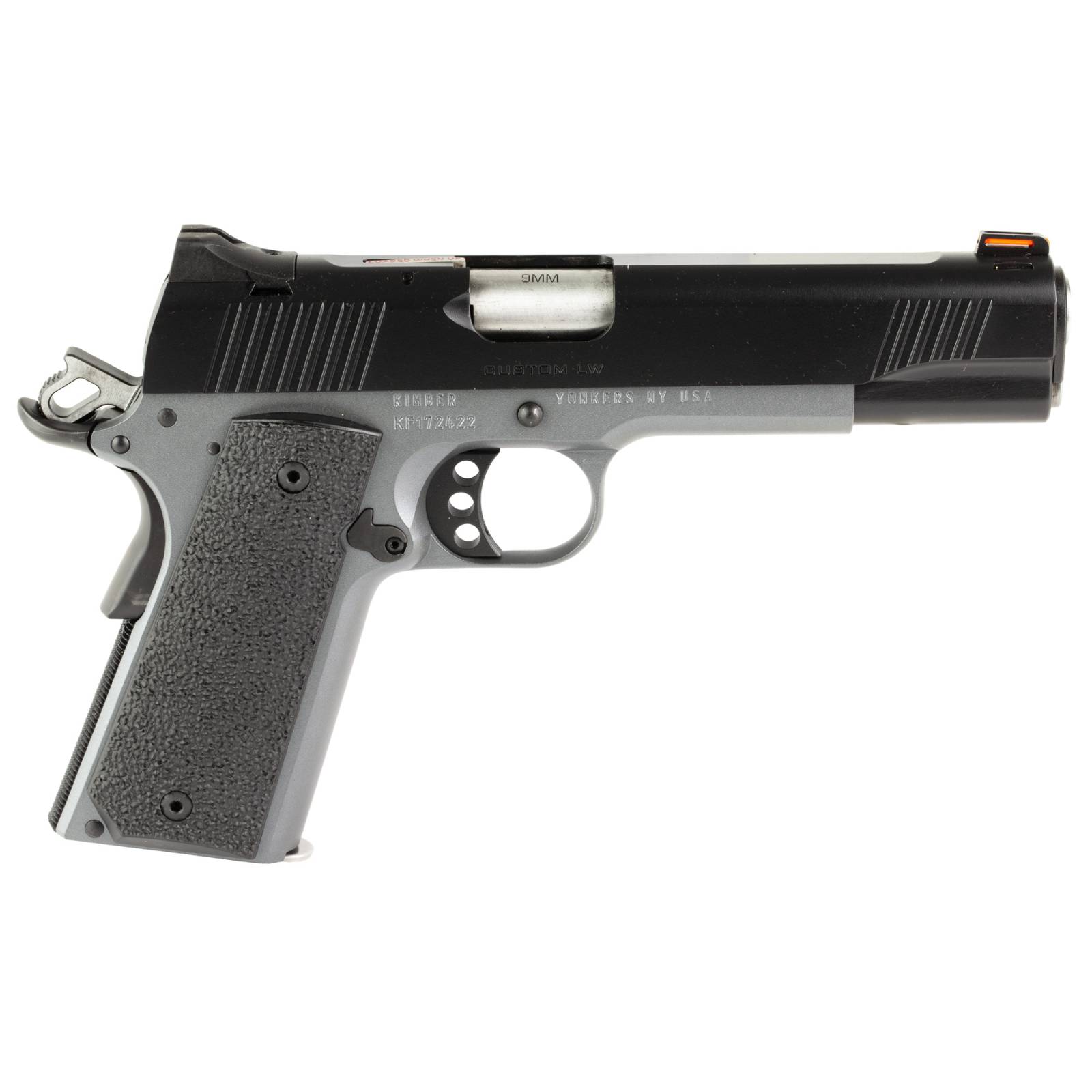 Kimber America, Custom LW Shadow Ghost, Semi-automatic, 1911, Full Size, 9MM, 5" Barrel, Matte Finish, Black Slide with Gray Frame, Rubber Grips, Manual Safety, Fiber Optic Front Sight, 9 Rounds, 1 Magazine, California Compliant