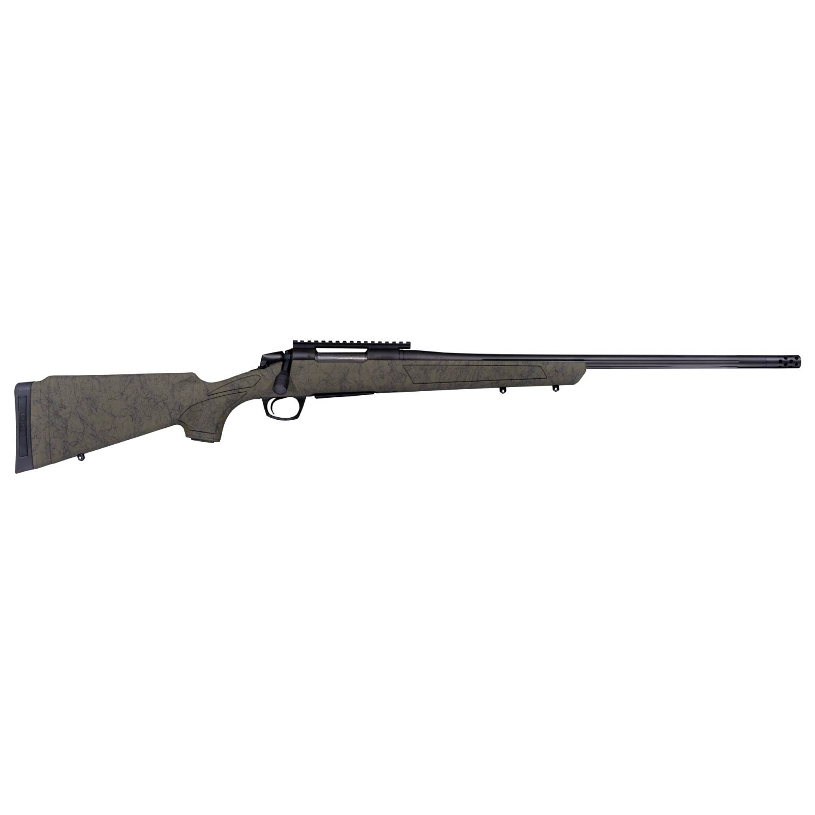 The CASCADE XT (X-Treme) is a precision-oriented member of the CASCADE family. Several key features make it the perfect multiple purpose rifle for many hunters. First, the heavier # 5 taper fluted barrel adds stability and improves balance, while also allowing the rapid firing of multiple shots without accuracy loss due to excessive barrel heating. Next, the radial muzzle brake greatly reduces recoil, making the XT very comfortable to shoot both on the range and in the field, even in heavier calibers. Lastly, the XT's tactical-style bolt knob provides better leverage for faster manipulation of the bolt, especially from the prone position.