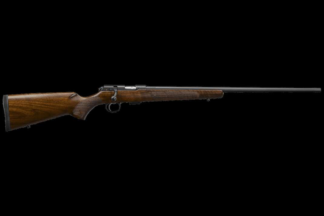 The classic American-style rimfire rifle, the 457 has a 24.8" barrel with no sights and is meant to be topped with a scope. Its Turkish walnut stock has a high flat comb and a classic checkering pattern. Like all of our 457's, it has an 11mm dovetail milled into the top of its receiver for attaching scope ring/mounts. In addition to the receiver-mounted, push-to-fire safety, we chopped almost an inch of length from the action and slab-sided it to reduce its footprint and weight.