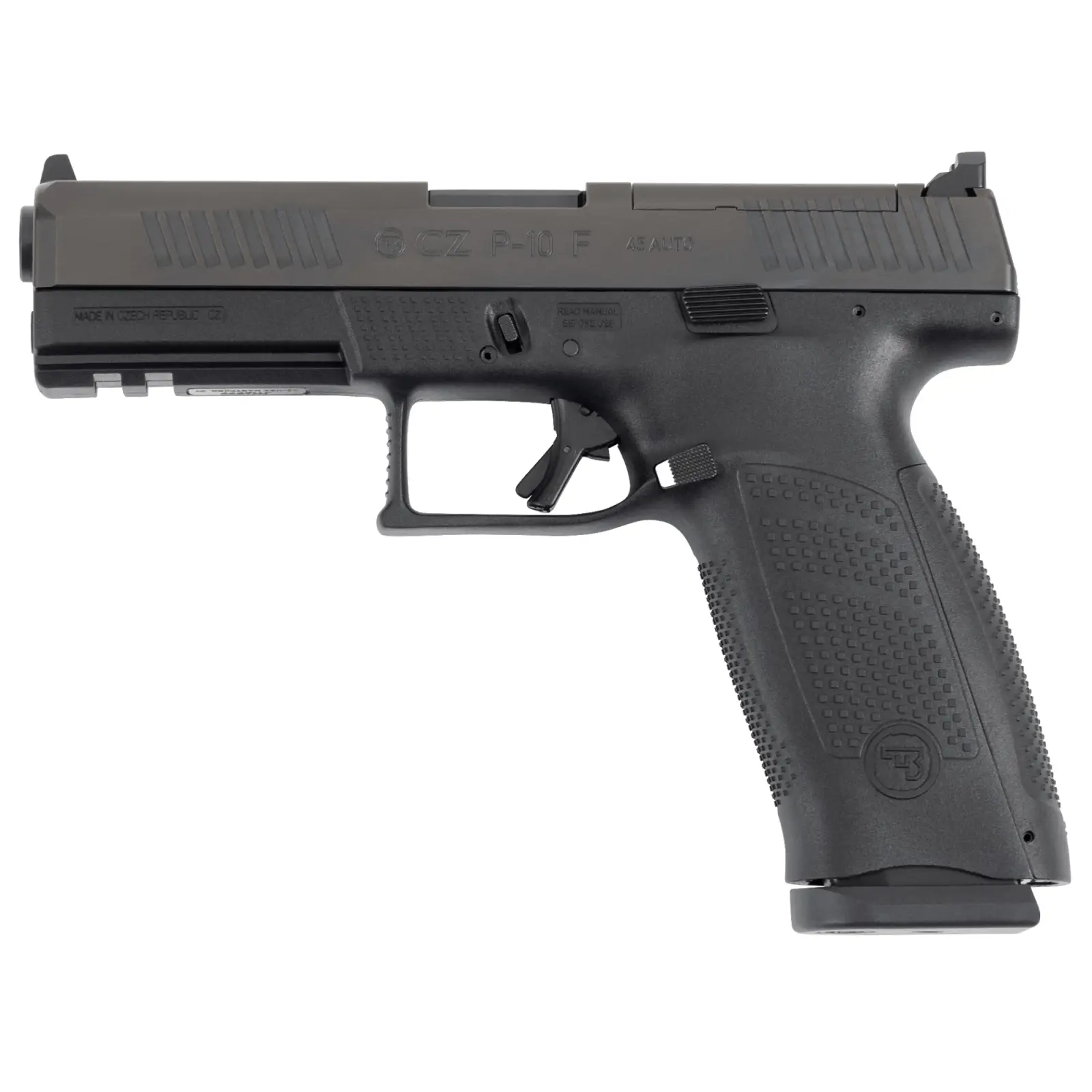 CZ, P-10 F, Striker Fired, Semi-automatic, Polymer Frame Pistol, Full Size, 45ACP, 4.5" Cold Hammer Forged Barrel, Nitride Finish, Black, White 3-Dot Sights, Optics Ready, 13 Rounds