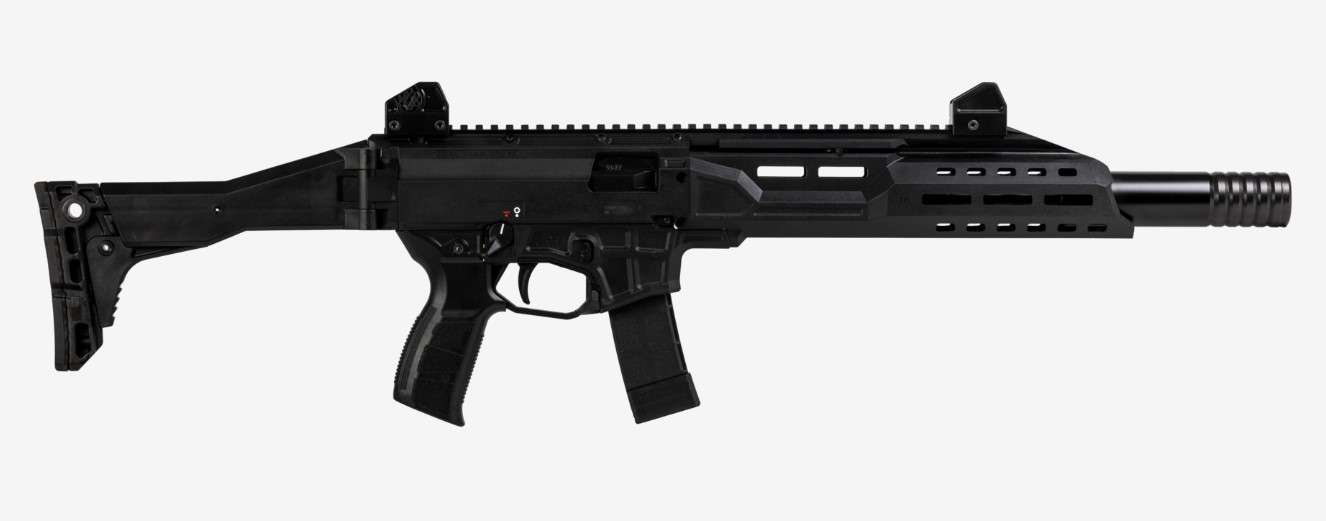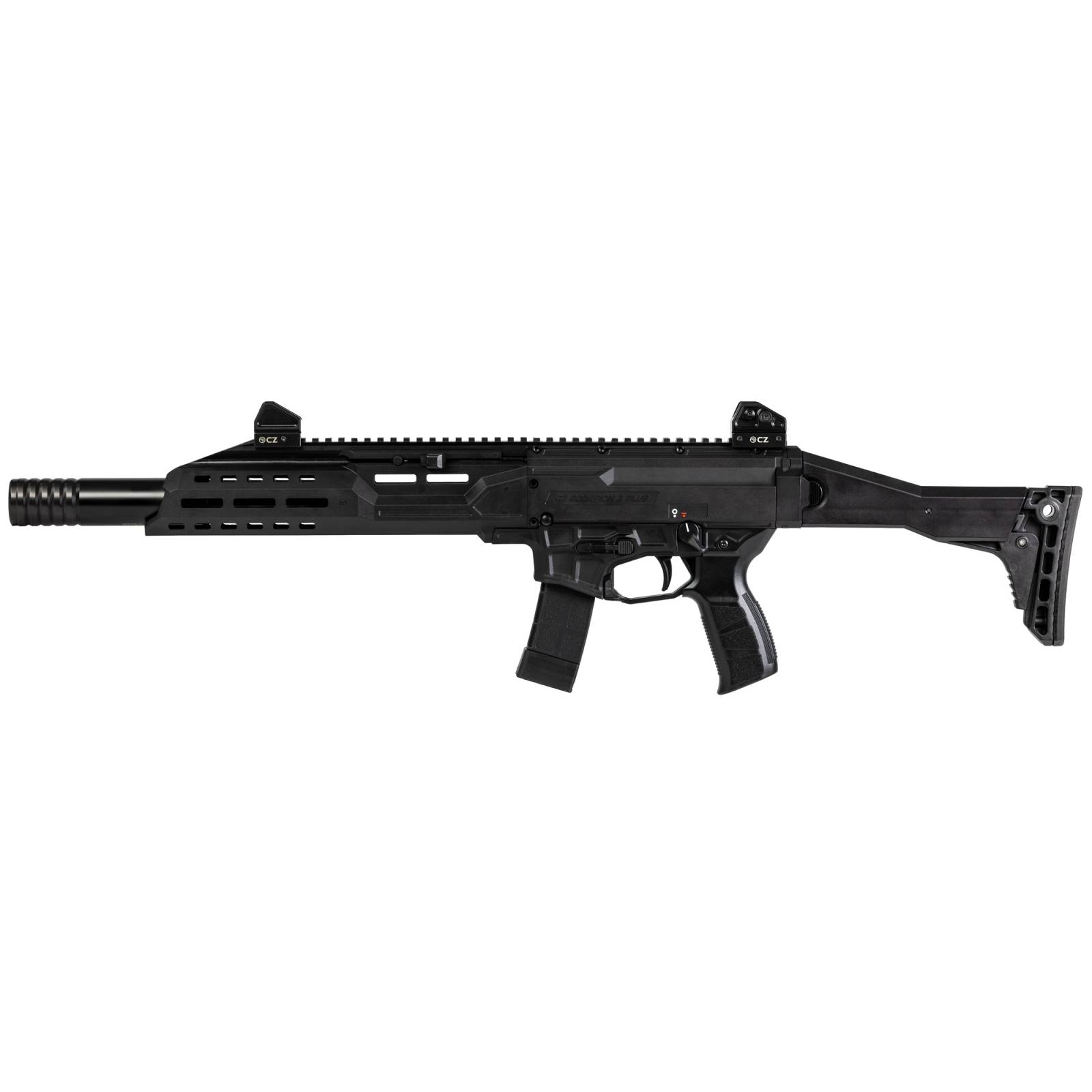 CZ, Scorpion 3 Plus, Semi-automatic, Carbine, 9MM, 16.3" Barrel, Threaded 1/2x28, Matte Finish, Black, Faux Suppressor, Folding Adjustable Stock, Adjustable Sights Ambidextrous Bolt Catch, 20 Rounds, 5 Magazines