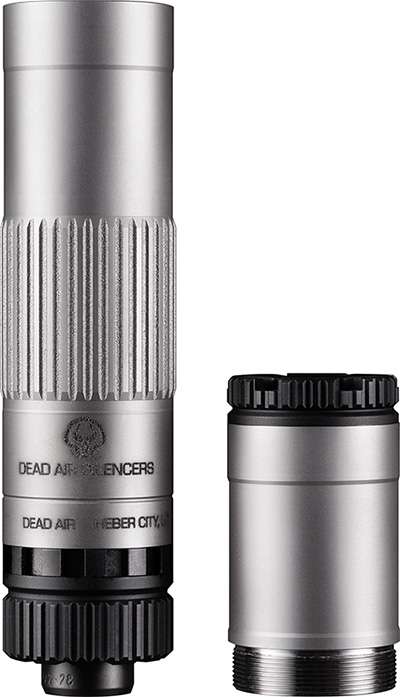 Dead Air Armament MOJAVE9, Suppressor, 9MM/.300 Blackout, Cerakote Finish, Silver, Includes 1/2-28 Piston MOJAVE9SIL