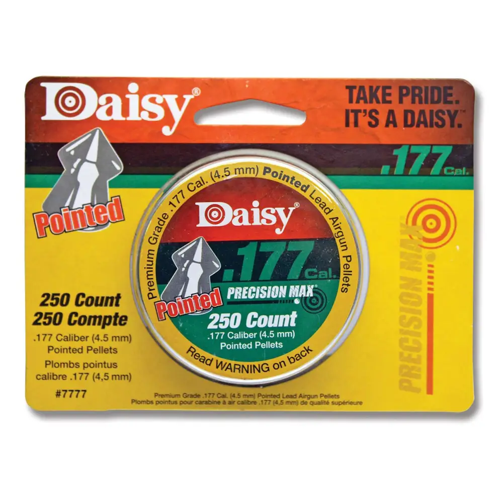 These .177 caliber, pointed field pellets are perfect for small game hunting. They come packaged in a screw-top tin. Each tin contains 250 pellets.