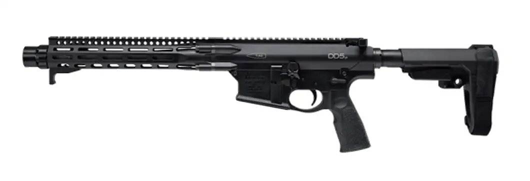 Daniel Defense DD5 P, Semi-automatic, AR Style Pistol, 7.62 NATO, 12.5" S2W Heavy Barrel, Mid-length Gas System, DLC Finish, Black, Linear Compensator, 10.5" Free-float M-LOK Handguard, Pistol Grip, SBA3 Brace, No Magazine 02-088-30157-067