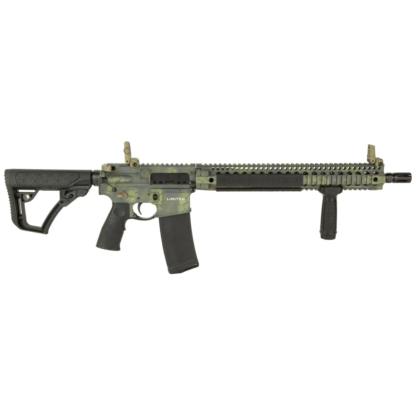 Daniel Defense, DDM4V9, Limited Series, Semi Automatic Rifle, 223 Remington/556NATO, 16" Cold Hammer Forged Barrel, 1:7 Twist, Mid-Length Gas System, Cerakote Finish, Crocodile Rattlecan, Daniel Defense Furniture, Daniel Defense Flash Suppressor, Daniel Defense DDM4 15" Handguard, Magpul MBUS3 Flat Dark Earth Sight Set, Geissele G2S 2-Stage Trigger, 32 Rounds, 1 Magazine