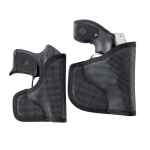 This will revolutionize pocket holsters. Never before has there been a material this viscous. This pocket holster will absolutely not move out of position in your front pocket. The inside is made of a slick pack cloth for a low friction draw and the core is just the right amount of foam to break up the outline of the gun. Available in black.