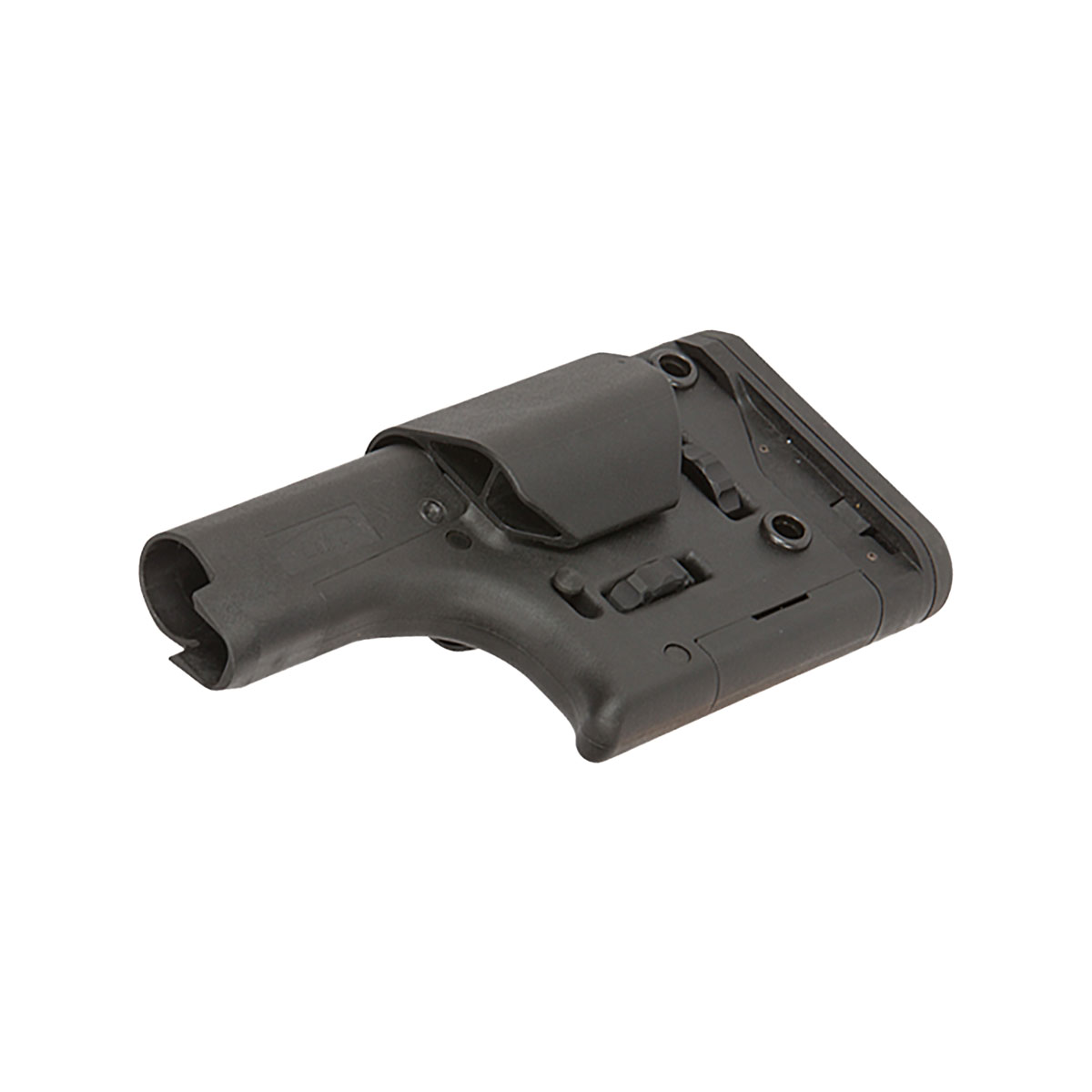 Designated Marksman Rifle buttstock. Designed for 5.56 caliber rifles with carbine extension tubes. The DMR stock has comb height and length of pull adjustments for fine tuning of the shooter experience. Shooters looking for a simple tool-less upgrade to their long range rifles love this stock. There are many rifle stocks on the market, but none like this. No change of buffer tube required, will replace any collapsible 6 position mil-spec stock.