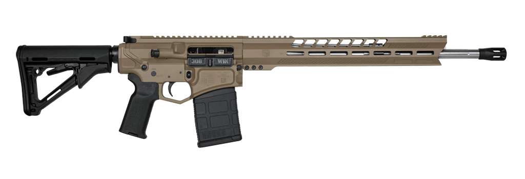 This Diamondback DB10 Rifle features a mid-length, medium 416 stainless steel fluted barrel, mid-length gas system and a shot-peened Mil-Spec 8620 bolt carrier. It utilizes 7075-T6 aluminum receivers, 15" M-Lok handguard, Magpul MOE-K2 grip, and a Magpul CTR stock. This model has a Diamondback Black Gold lower receiver.
