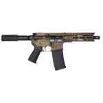 This DB15 Pistol features a pistol-length, heavy, 4150 ChromeMoly barrel, pistol-length gas system, and a shot-peened Mil-Spec 8620 bolt carrier. It has 7075-T6 aluminum receivers, 6" M-Lok handguard, Magpul MOE grip, and a buffer tube foam pad.