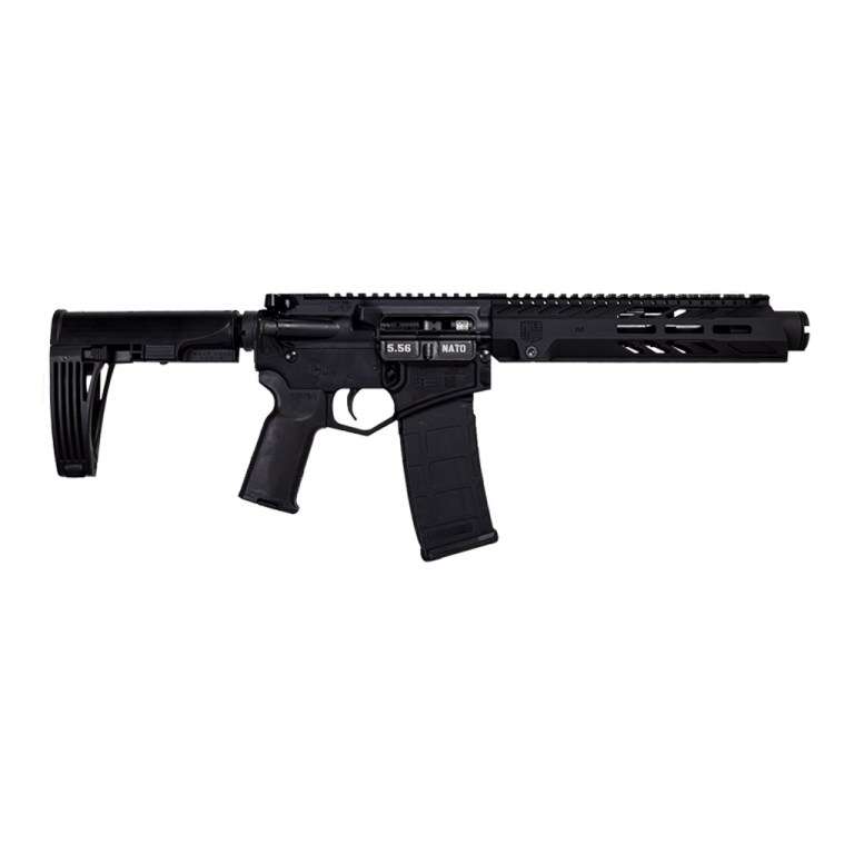 This DB15 Pistol features a pistol-length, medium, 4150 ChromeMoly barrel with KAK flash can, pistol-length gas system, shot-peened Mil-Spec 8620 bolt carrier. It utilizes 7075-T6 receivers, 13" M-Lok handguard, Magpul MOE-K2+ grip, no sights, and a Tailhook MOD 2 stock.
