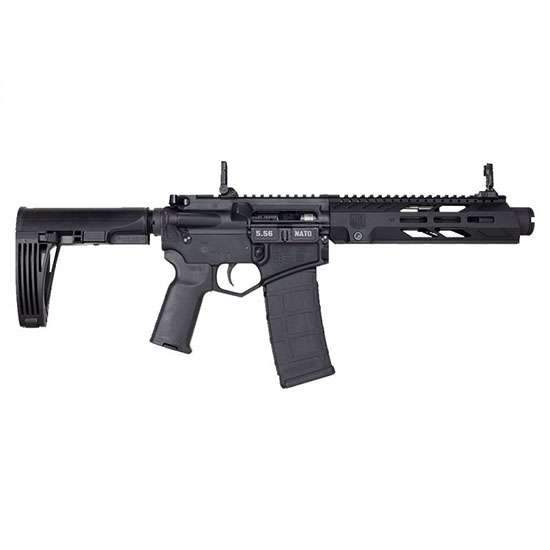 This DB15 Pistol features a pistol-length, heavy, 4150 ChromeMoly barrel with KAK flash can, pistol-length gas system, shot-peened Mil-Spec 8620 bolt carrier. It utilizes 7075-T6 receivers, 9" M-Lok handguard, Magpul MOE-K2+ grip, MBUS sights, and a Tailhook MOD 2 stock.
