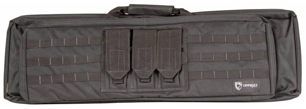 Drago Gear gun cases are designed to optimally secure and protect long guns, and come equipped with multiple storage areas to efficiently organize ammunition and accessories. The XT Double Gun Case provides protection for two rifles (36"). It features dual MOLLE front panels for attachment of load-bearing equipment and fast access to three external AR magazine holders. The XT also includes dual internal pistol pouches, and four internal pistol magazine holders. It has a removable, padded shoulder strap and a hand carry handle. This water-resistant case is made of 600D polyester.