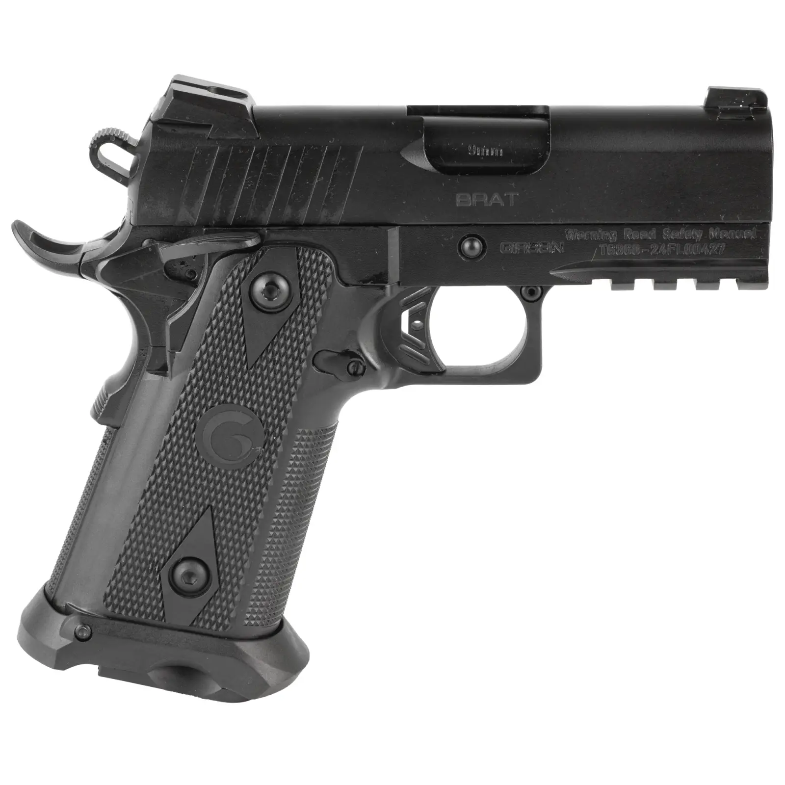 The Girsan Witness 2311 BRAT 9mm is a compact, high-capacity pistol that blends classic 1911 styling with modern enhancements. Featuring a 3.4-inch barrel and a 17-round magazine, this single-action, semi-automatic handgun offers excellent concealability without sacrificing performance. Its matte black finish, polymer grips, and extended beavertail ensure comfortable control and a secure hold.