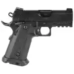 Built on a metal frame with a polymer grip module, the Witness 2311 BRAT is designed to accept standard double-stack 1911 magazines, giving it added versatility for training or self-defense. A skeletonized trigger, fixed sights, and a Picatinny accessory rail round out its tactical features. Reliable, durable, and affordably priced, this pistol is a solid option for shooters who want the proven feel of a 1911 with increased capacity and modern performance upgrades.
