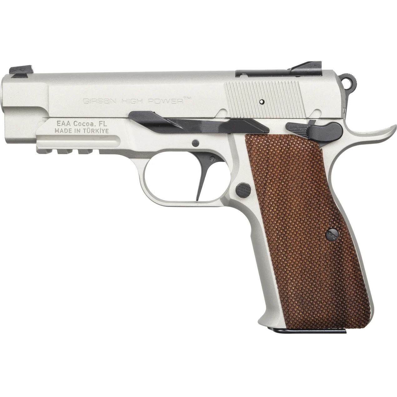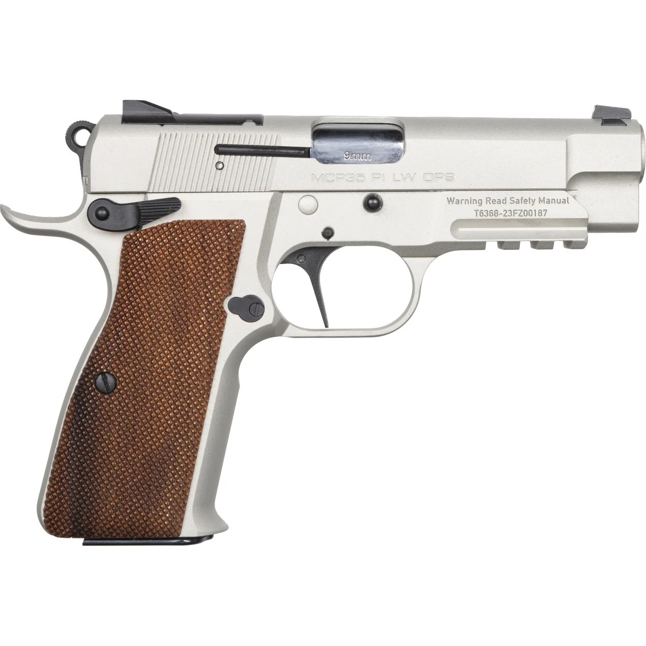 EAA/Girsan High Power™ MCP35PILW – Introducing the lightest Girsan High Power™ to date: A 9mm carry size, single-action pistol with a lightweight aluminum frame that has the fit, feel and design of the legendary John Browning creation. At almost ½ pound lighter than the traditional Girsan High Power™, the new MCP35PILW (OPS or MATCH) will become your new carry pistol. Equipped with an optic-ready slide featuring an RMS/RMSc footprint, the Girsan High Power™ Light-Weight comes with the most innovative features for any High-Power design. An aluminum alloy frame, Walnut grips, Ambidextrous Safeties, Accessory Rail (OPS model), Extended Beavertail, Straight Trigger, No Magazine Disconnect, Fiber Optic Front Sight, and a double-stacked magazine capacity of 15+1 rounds.