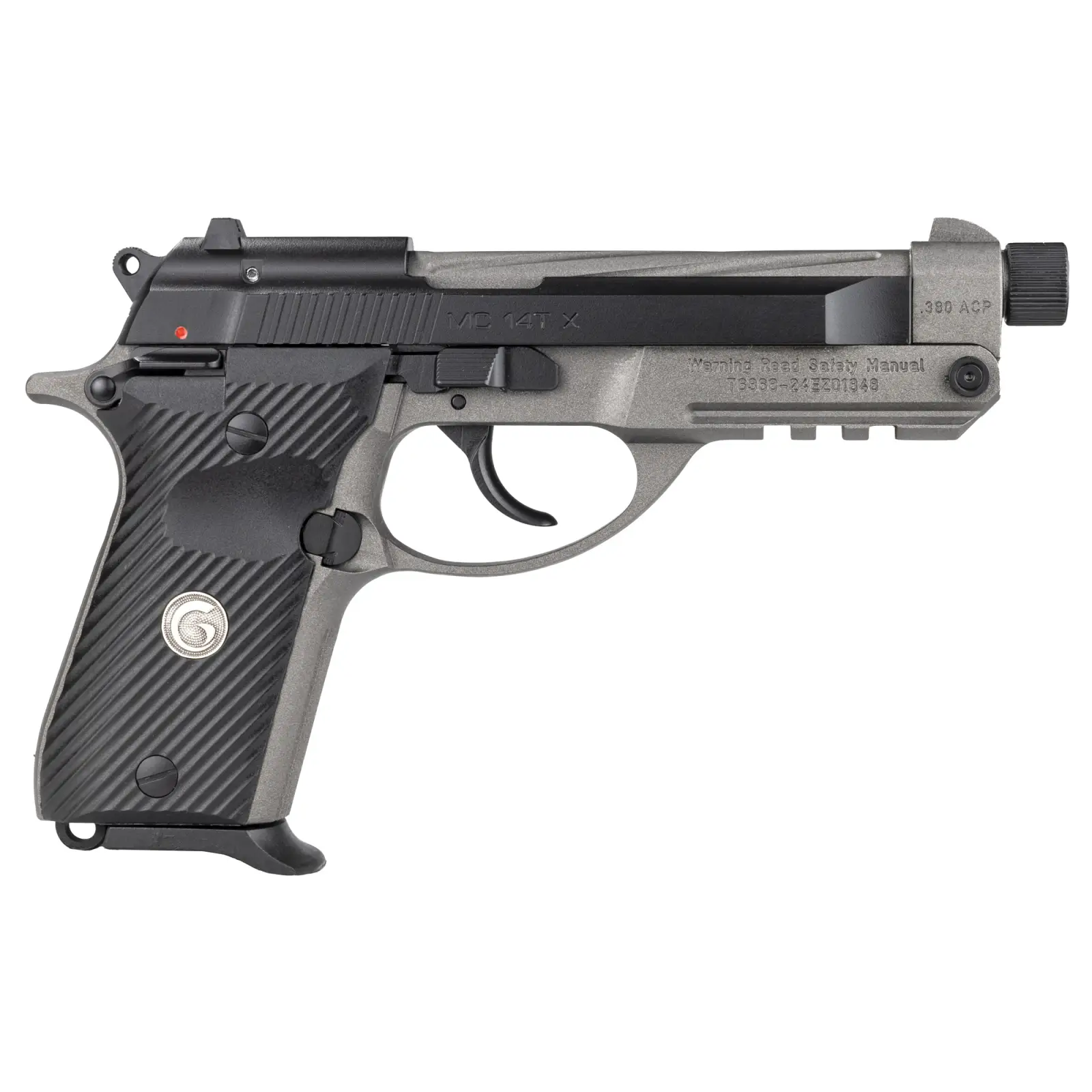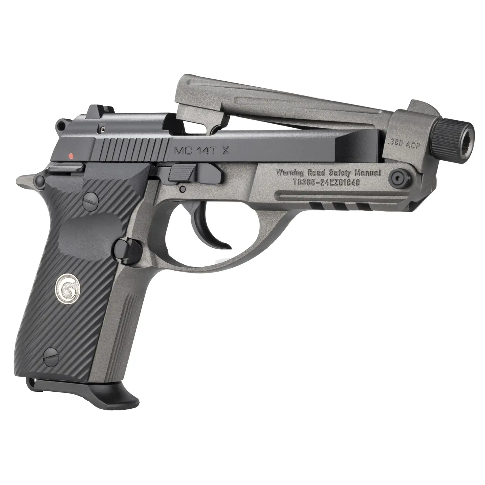 The Girsan MC 14T X Tip-Up allows the user to load and unload this handgun without racking the slide. It's a great option for people with limited hand strength or simply want the convenience of an easy loading process. This new generation pistol features a spiral-fluted, threaded barrel and enhanced trigger performance. Chambered in .380 ACP, this MC 14T X Tip-Up also comes standard with two-tone, black and tungsten Cerakote, low profile sights, accessory rail, G-10 style grips, 13+1 capacity, and excellent accuracy.