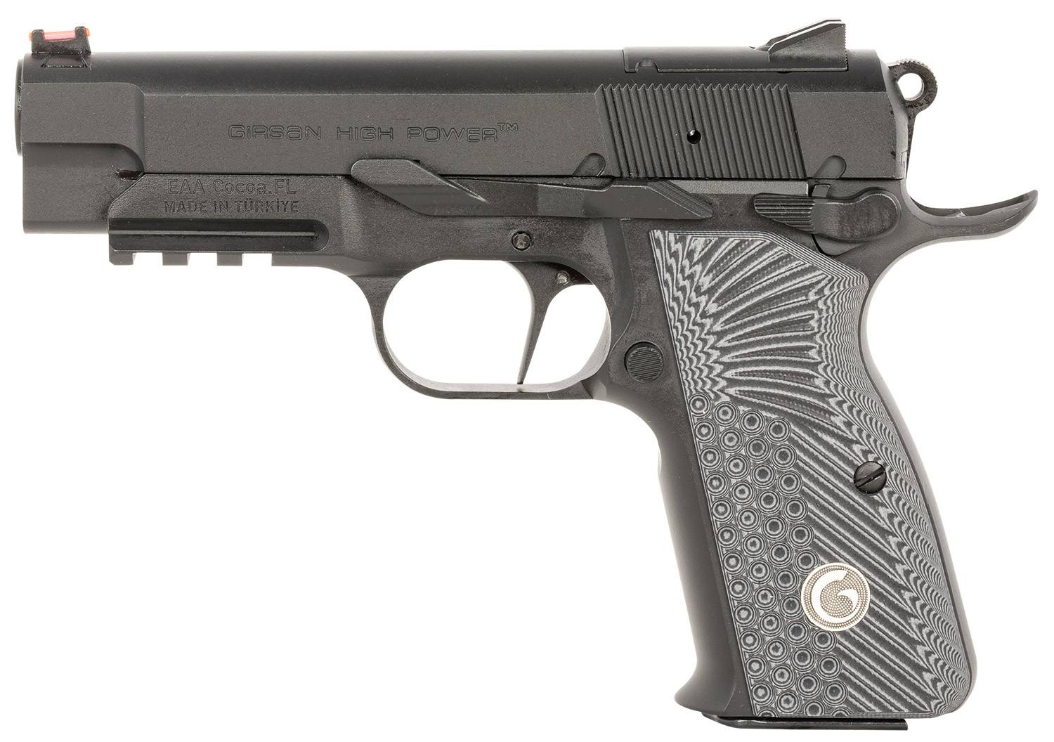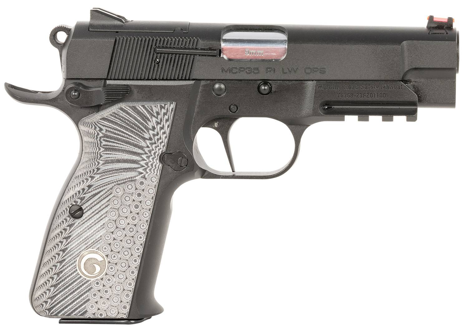 Introducing the lightest Girsan High-Power to date: A carry size metal frame S/A pistol with a lightweight aluminum frame that has the fit and feel and design of the legendary John Browning High Power design. At almost 1/2 pound lighter than a traditional Girsan High Power. The new MCP35PILW (OPS or MATCH) will become your new carry S/A pistol. Features include Extended Beavertail Straight Crisp Trigger G10 Grips Optics Ready RMSC Cut Fiber Front Sight Modern Rear Sight Compact Slide and Barrel No Magazine Disconnect Ambi Safety Beveled Magwell and Accessory Rail if you choose. - FEATURES - GlO Grips - Aluminum Frame - Ambidextrous Safeties - Accessory Rail - Optic Ready RMSC Optics Cut - Extended Beavertail - Straight Trigger - No Magazine Disconnect - Fiber Optics Front Sight - 9mm (15+ 1 Rounds Capacity) - Frame and Slide and controls all Black
