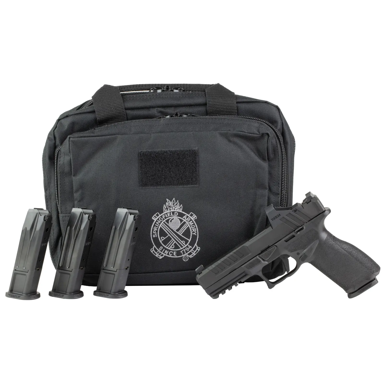 Springfield, Echelon Gear Up, Striker Fired, Semi-automatic, Polymer Frame Pistol, Full Size, 9MM, 4.5" Barrel, Melonite Finish, Black, Optics Ready Slide, 3 Dot Tritium Night Sights, 10 Rounds, 5 Magazines, Includes Viridian RFX11 Green Dot Sight and Range Bag
