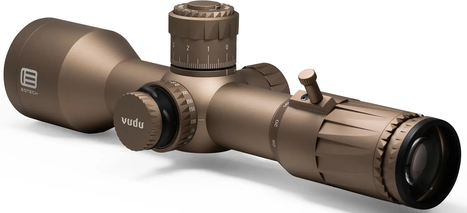 The Vudu 5-25X50 is ideal for short platform rifles. At approximately 11.2 inches in length, the 5-25X is one of the shortest first focal plane rifle scopes on the market. The elevation turret includes a push/pull locking system and EOTECHs EZ Chek Zero Stop. One unique advantage of the short design is that it provides the ability to attach either a clip-on night vision or thermal device in front of the scope. Includes battery, lens cloth, throw lever, sunshade, zero stop wrench, operator and reticle manual.