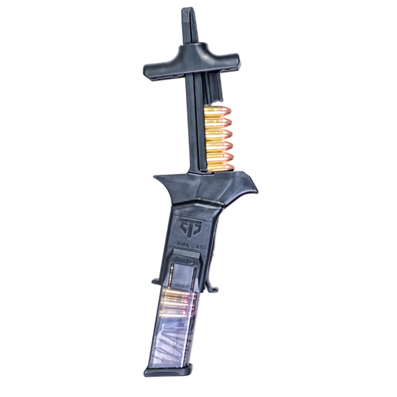 ETS C.A.M Loader loads pistol mags in seconds. It works idealy with 9mm and .40 caliber pistol mags, double or single stack, and also picks up rounds from an ammo tray. The mag loader is constructed of an extremely durable polymer and easily fits in your range bag.