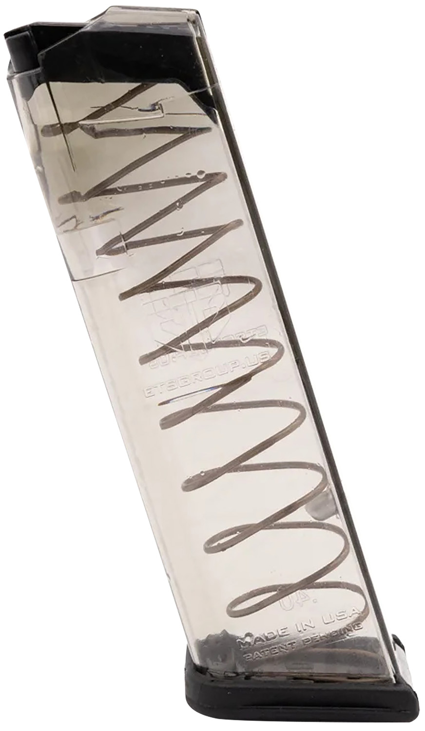 The ETS pistol mag is constructed of an extreme impact resistance advanced polymer with superior heat, cold and UV resistance, translucent body, and is creep resistant which means the feed lips and body won't spread when being stored long term even when fully loaded. This mag features an easy disassembly with ETS's specially designed base plate and is also designed to be compatible with Glock extensions. The ergonomically designed floor plate makes it easy to grab from mag pouches.
