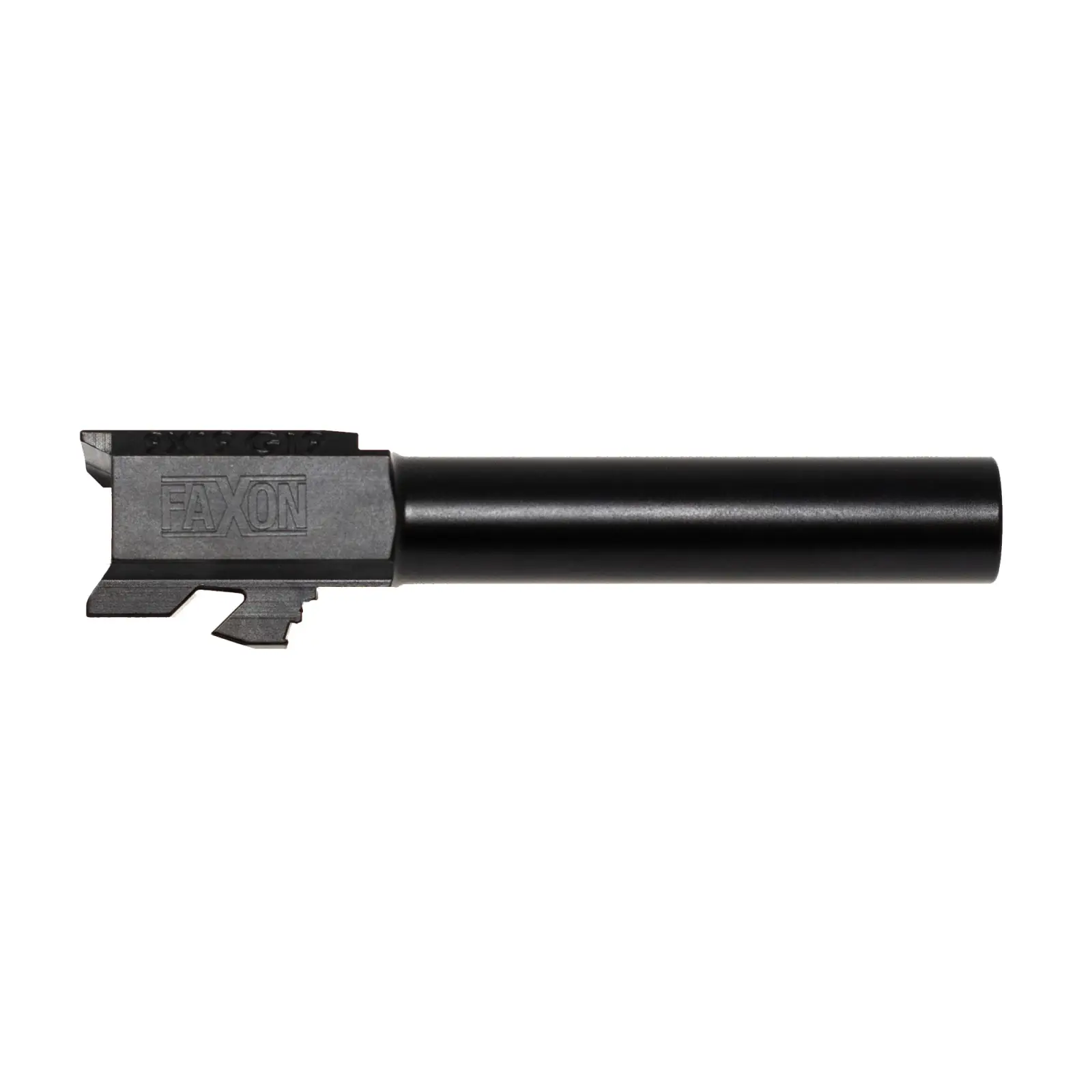 Faxon's Duty Series Pistol Barrels for G19 / Glock 19 are machined 100 percent in-house from stress-relieved 4150 CMV steel. These barrels are then given a black Nitride coating to increase lubricity, barrel life, and resistance to surface wear. All barrels are conventionally rifled to allow a wider range of ammunition to be used, including cast lead. The barrels drop into factory-spec slides with no gunsmithing required. Better-than-factory tolerances ensure a consistent, tighter lockup than OEM.