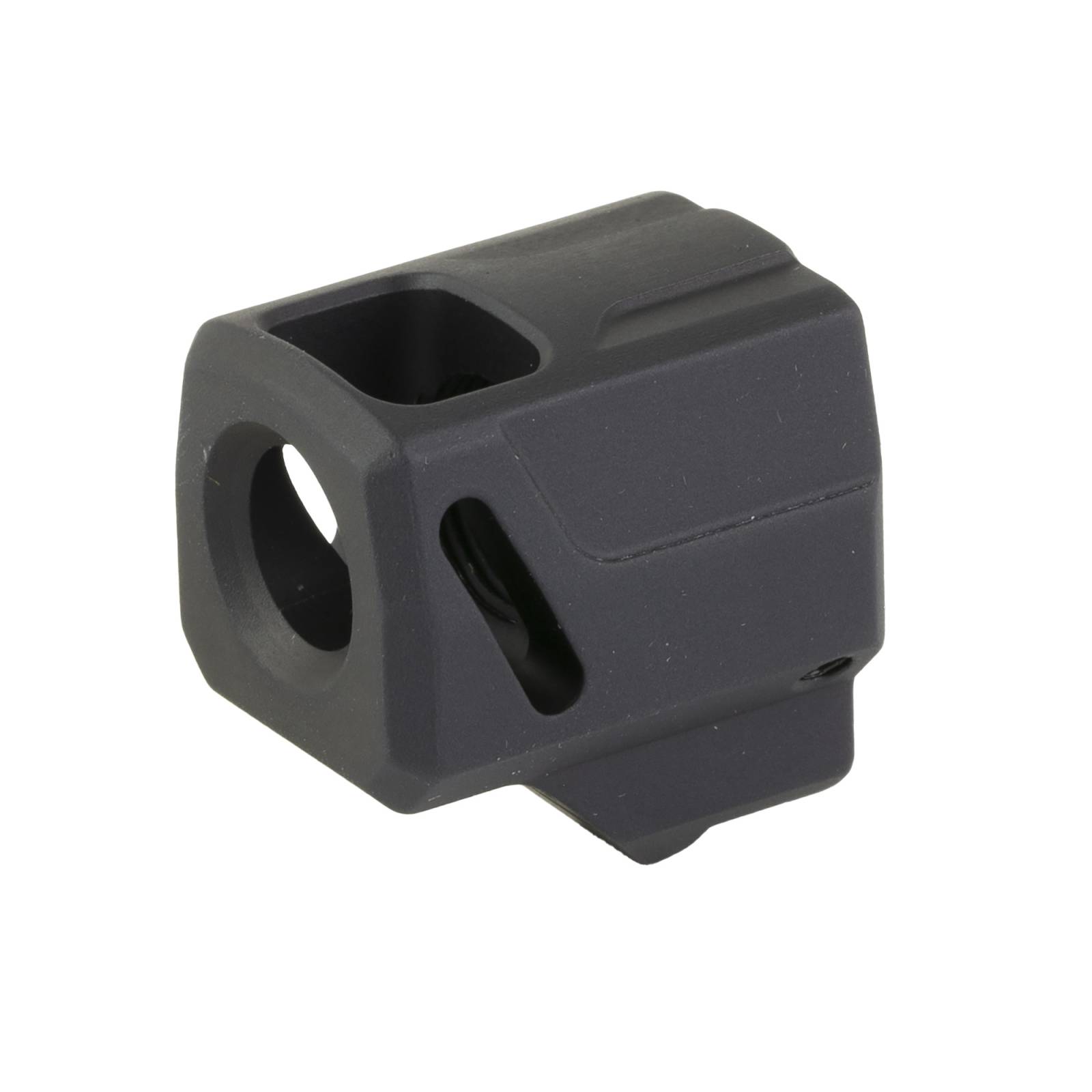 Faxon Firearms Pistol Compensators have been tested and confirmed compatible with SIG P365 & P365 XL Pistols. Constructed of 6061 aluminum with a black anodized finish, Faxon Pistol Compensators feature a uniquely angled front port single chamber design, enabling the compensator to improve consistency while reducing muzzle climb and recoil. The angled ports allow gas to deflect upwards as opposed to only deflecting sideways, reducing up and down muzzle movement and improving reliability. Barrel protrusion is designed to fit flush with the slide and has been optimized for Faxon branded barrels. For all other barrels, the barrel should protrude .600" or less for a flush fit. Each compensator comes complete with thread locker, two 6-32 set screws, and a 1/16 Allen wrench.