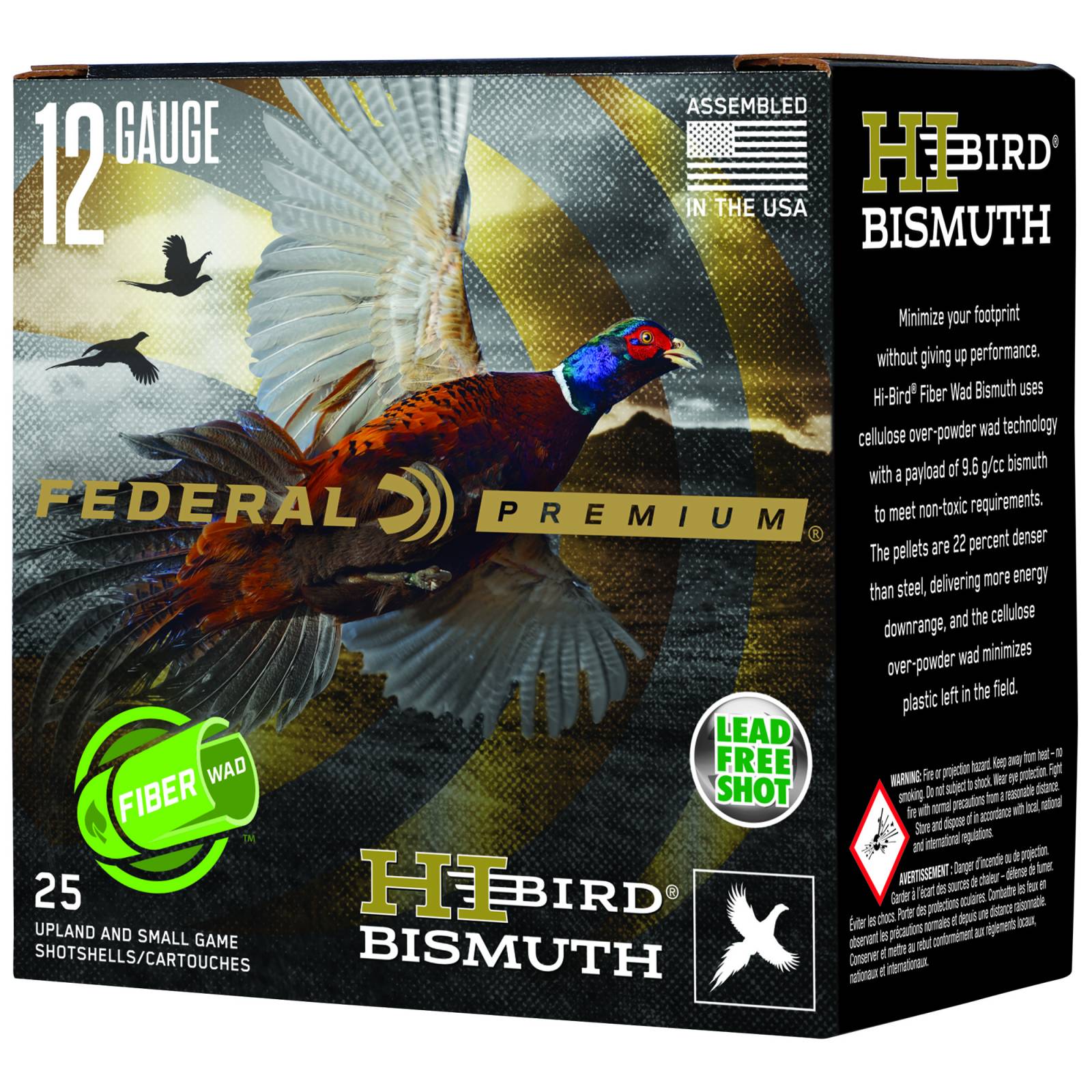 These shotshells feature the same cellulose over-powder wad technology as original Hi-Bird Fiber Wad, but with a payload of 9.6 g/cc bismuth to meet non-toxic requirements. The pellets are 22 percent denser than steel, delivering more energy downrange, and the cellulose over-powder wad minimizes plastic left in the field.