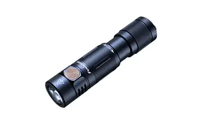 FENIX E05R V2, Flashlight, White LED, 400 Lumens, 2.68" Long, Anodized Finish, Black, Built-in 320mAh Battery, Includes Micro USB Charging Cable FX-E05R-BLACK