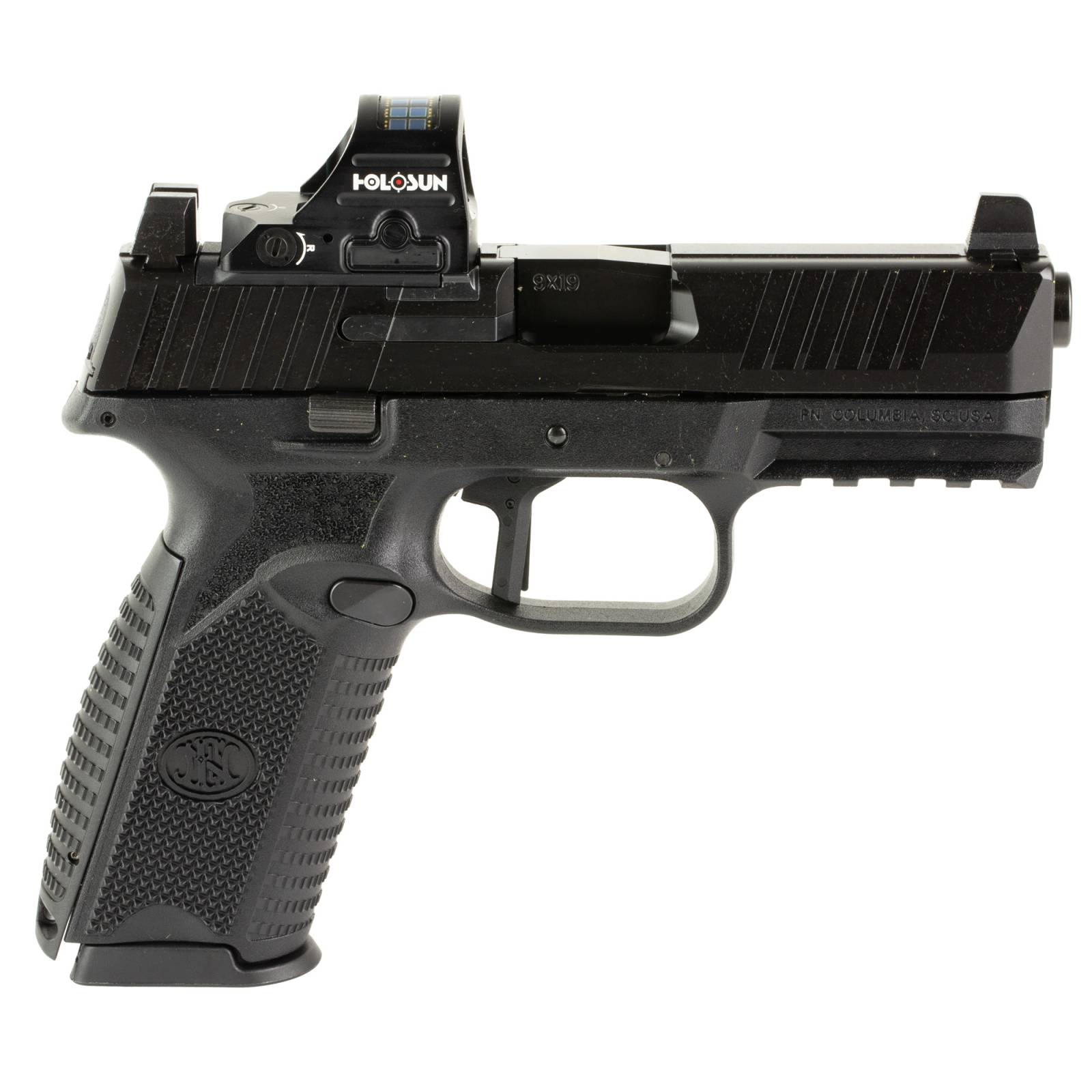 FN America, 509 MRD, Striker Fired, Semi-automatic, Polymer Frame Pistol, Mid-Size, 9MM, 4" Barrel, Matte Finish, Black, Inlcudes Holosun 407C Red Dot Sight, Non-Manual Safety, Optic Height Sights, 10 Rounds, 2 Magazines