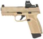 The FN 545 MRD is a pleasure to handle with the upgraded ergonomics. Built with enduring accuracy in mind, shooters can mount their favorite red dot sight in minutes, adding pinpoint control on command. Featuring the high endurance striker, crisp trigger pull, fully ambidextrous slide stop lever and magazine release, MIL-STD-1913 rail, Driftable steel sights co-witness, loaded chamber indicator and Low-Profile Optics Mounting System. Includes Holosun 407C, two interchangeable backstraps, two magazines, four MRD mounting plates, owners manual, locking device and case.