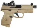 The FN 509 Compact Tactical is easily deployed as an everyday carry. The pistol features the FN Low-Profile Optics Mounting System that accepts nearly all commercial miniature red dot optics; blackout iron sights that co-witness; cold hammer-forged threaded barrel compatible with most popular aftermarket accessories like compensators or suppressors; interchangeable backstraps; Picatinny rail; fully ambidextrous slide stop lever and magazine release. Includes a Viper red Dot, one 12rd and one 24rd magazine, two interchangeable backstraps, locking device and soft case.
