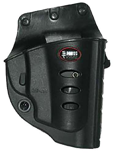 The E2 series features one piece holster body construction, and like all Fobus holsters, the E2, is lightweight and includes steel reinforced rivet attachment and a protective sight channel. The paddle also includes a rubberized insert to provide both comfort and stability. A tension adjustment screw is incorporated to allow the user to customize the ease of presentation and the security of retention, functioning with the proven Fobus passive retention design.