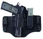 Galco's patented KingTuk IWB holster provides the best of both worlds: a comfortable backing plate made of lined saddle leather with Napa leather front combined with a rigid Kydex holster pocket for a fast draw and easy holstering. Worn inside the waistband, the KingTuk s removable metal belt clips (fitting belts up to 1.75") can be moved up or down in the corresponding holes in the leather, enabling the user to set the carry height and angle to suit their unique preferences.