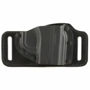 Galco's TacSlide mates a Kydex holster pocket to a slotted steerhide backplate for a belt holster that is fast, concealable, and very economical. An open top and near-neutral cant make the draw fast and simple, while the open bottom accommodates multiple barrel lengths. The forward-molded design contours to the hip, and the belt slots pull the handgun into the body for concealment. It fits belt widths up to 1.75".