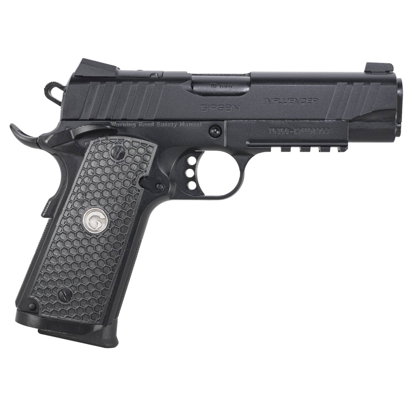 Girsan MC1911C Influencer, 1911, Semi-Automatic, Metal Frame Pistol, Commander Size, 10MM, 4.4" Barrel, Optics Ready Slide, Steel, Black, Composite Grips, 3-Dot Sights, Ambidextrous Safety, 9 Rounds, 1 Magazine 391045