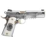 Girsan, MC1911S Liberador, Semi-automatic, 1911, Metal Frame Pistol , Full Size, 38 Super, 5" Barrel, Polished Stainless Finish, Silver, Gold Accents, Engraved White Ivory Grips, Extended Beavertail, Accessory Rail, Tactical Rear Sight, Fixed Front Sight, 10 Rounds, 1 Magazine