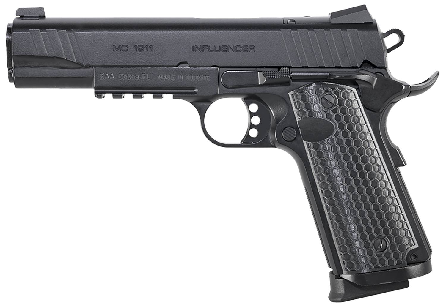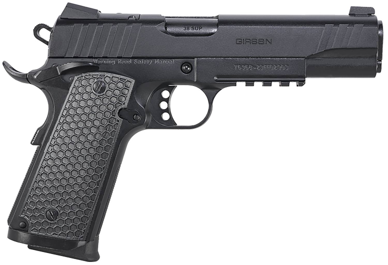 Girsan MC1911S Influencer, 1911, Semi-Automatic, Metal Frame Pistol, Full-Size, 38 Super, 5" Barrel, Optics Ready Slide, Steel, Black, Composite Grips, 3-Dot Sights, Ambidextrous Safety, 9 Rounds, 1 Magazine 391049