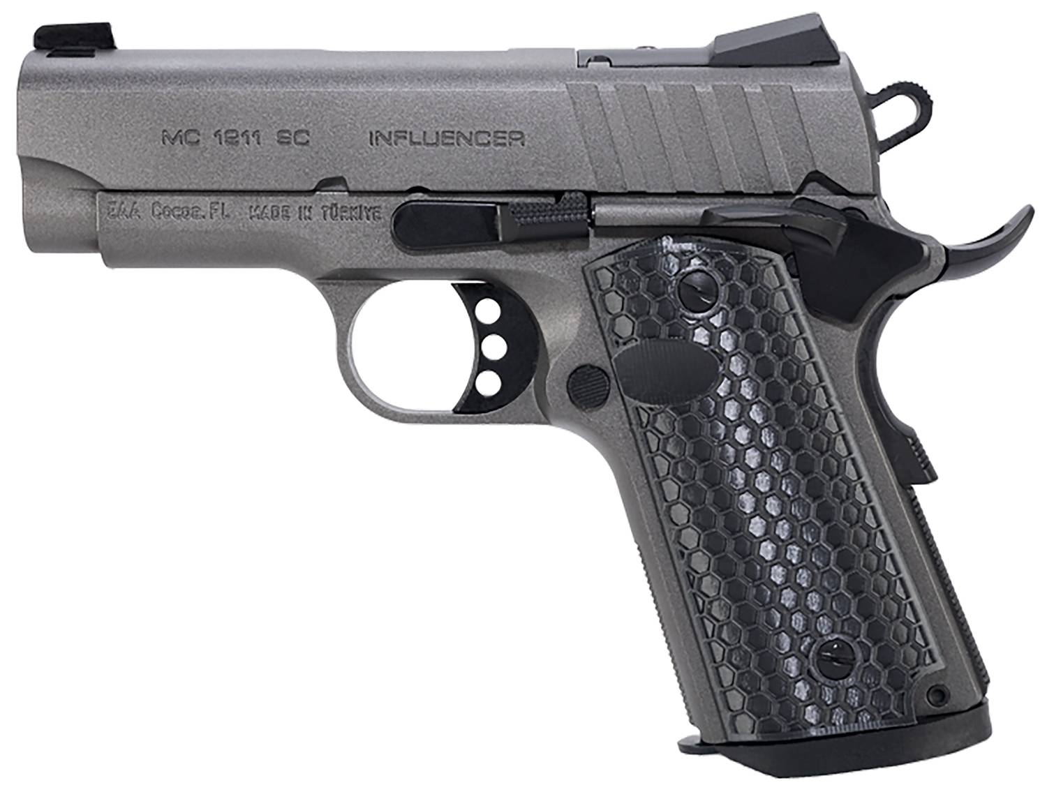 Girsan MC1911SC Influencer, 1911, Semi-Automatic, Metal Frame Pistol, Officer Size, 9MM, 3.4" Barrel, Optics Ready Slide, Steel, Tungsten Gray, Composite Grips, 3-Dot Sights, Ambidextrous Safety, 7 Rounds, 1 Magazine 391140
