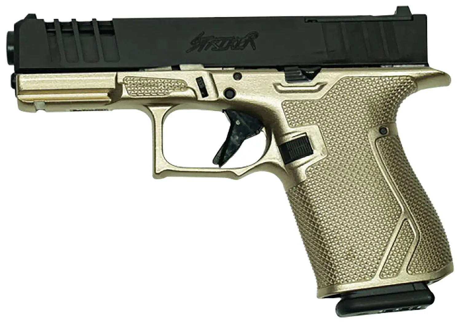 The Great Lakes GLFA 19 Striker 9mm compact features a polymer frame, optic ready RMR compatible ported slide w/front & rear slide serrations, compatible with Gen3 parts, ambi-magazine release, Cerakoted Galaxy Platinum frame and 4" barrel. Includes one 15rd Glock compatible magazine.