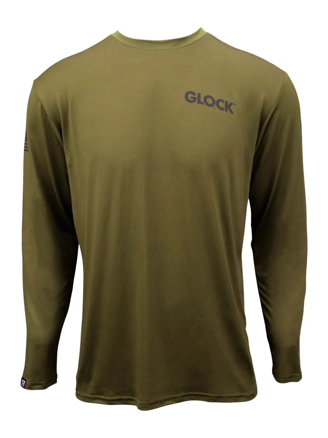 GLOCK Performance, Long Sleeve Shirt, Polyester/Spandex Material, Large, Olive Drab Green and Black AP96439