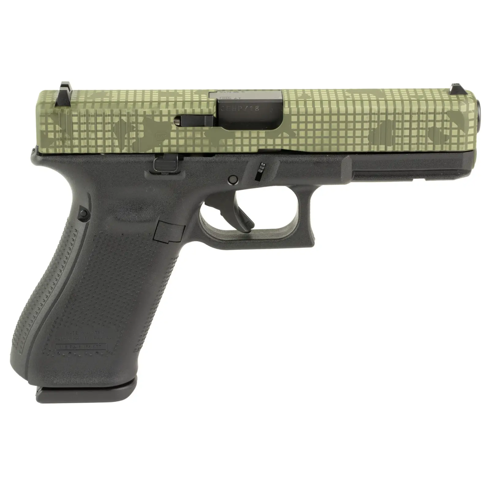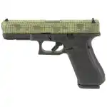 GLOCK, 17 Gen 5, Striker Fired, Semi-automatic, Polymer Frame Pistol, Full Size, 9MM, 4.49" Barrel, Custom OD Green, Night Grid Cerakote Finish by Skydas, Front Serrations, Fixed Sights, 17 Rounds, 3 Magazines