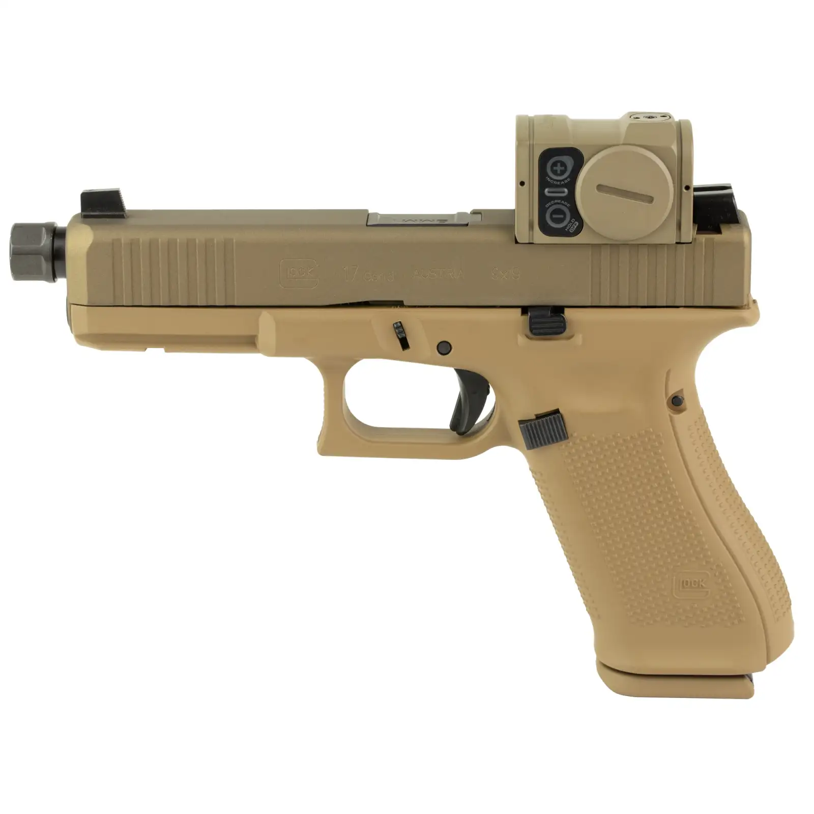 GLOCK 17 GEN 5, CK, Semi-automatic, Striker Fired, Full Size, 9MM, 4.49", Flat Dark Earth, Interchangeable, 17 Rounds, 3 Magazines, Front Serrations, Suppressor Sights, Polymer, Cerakote PA175S204N