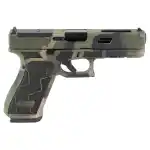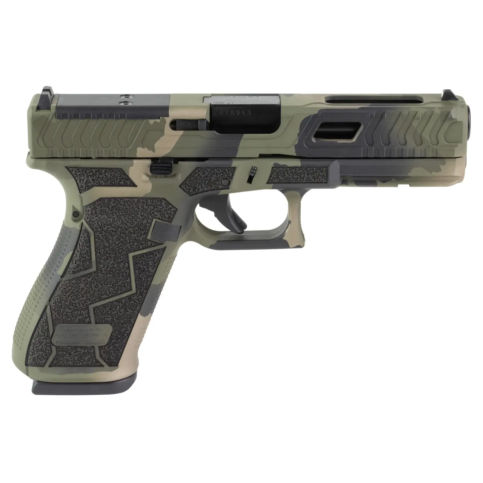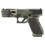 The standards of performance and reliability can't be beat now with the option to add an optic to the new G20 Gen5 MOS. All of the Gen5 qualities are present in this compact-size pistol: The latest GLOCK nDLC surface finish, unmatched in hardness and rust resistance; the high traction Gen5 frame texture, quickly reversible magazine catch, ambidextrous slide stop lever, the GLOCK Modular Backstrap System (MBS) for individual operator adjustability, the universally-acclaimed GLOCK Safe Action System and high visibility orange magazine followers. This Exclusive model features a custom M81 Torn Camo Cerakote Finish from Shark Coast Tactical paired with a Laser Stippled Grip.