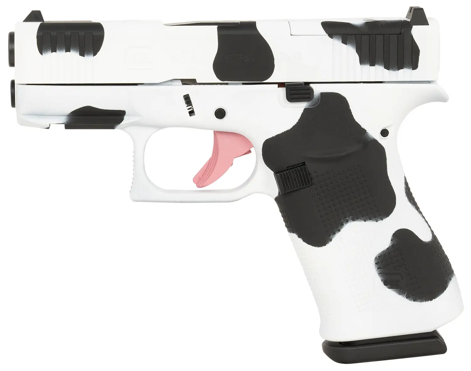 The Glock 43X combines a compact-size grip length and a subcompact-slim slide for a variety of users. Three safeties disengage sequentially as the trigger is pulled and automatically re-engage when the trigger is released. Features polymer frame with an accessory rail and beavertail; advanced surface treatment of the slide results in optimal hardness by considerably reducing wear and tear and it makes it corrosion resistant; matte surface minimizes light reflection; the extractor serves as a loaded chamber indicator to comply with the laws of certain states and its position may visually and physically indicate whether there is a cartridge in the chamber of the pistol. MOS features a slide that is precision machined to provide a mounting system for popular optic sights. With multiple adapter plates (sold separately), you can quickly and easily mount miniature red dot sights. Includes three magazines, mag loader, cleaning kit, pistol case and gun lock. *Note: The G43X with the Modular Optic System (MOS) does not come with adapter plates.