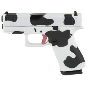 GLOCK, 43X, Striker Fired, Semi-automatic, Polymer Frame Pistol, Sub-Compact, 9MM, 3.41" Barrel, Skydas Cerakote Finish, Custom Cow Print Cerakote Finish by Skydas, Fixed Sights, 10 Rounds, 2 Magazines
