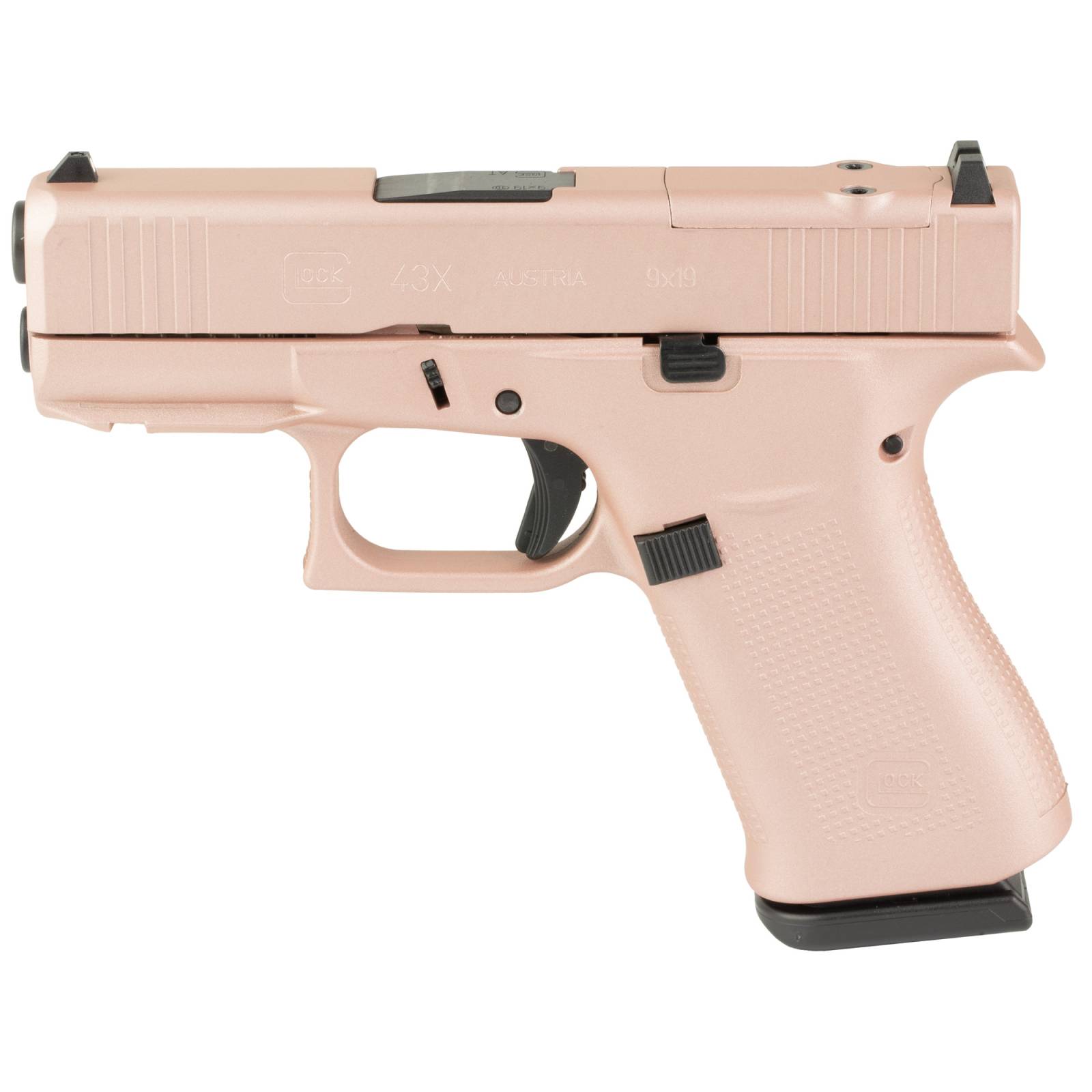 GLOCK, 43X, M.O.S, Striker Fired, Semi-automatic, Polymer Frame Pistol, Sub-Compact, 9MM, 3.41" Barrel, Custom Rose Gold Cerakote Finish by Skydas, Fixed Sights, 10 Rounds, 2 Magazines