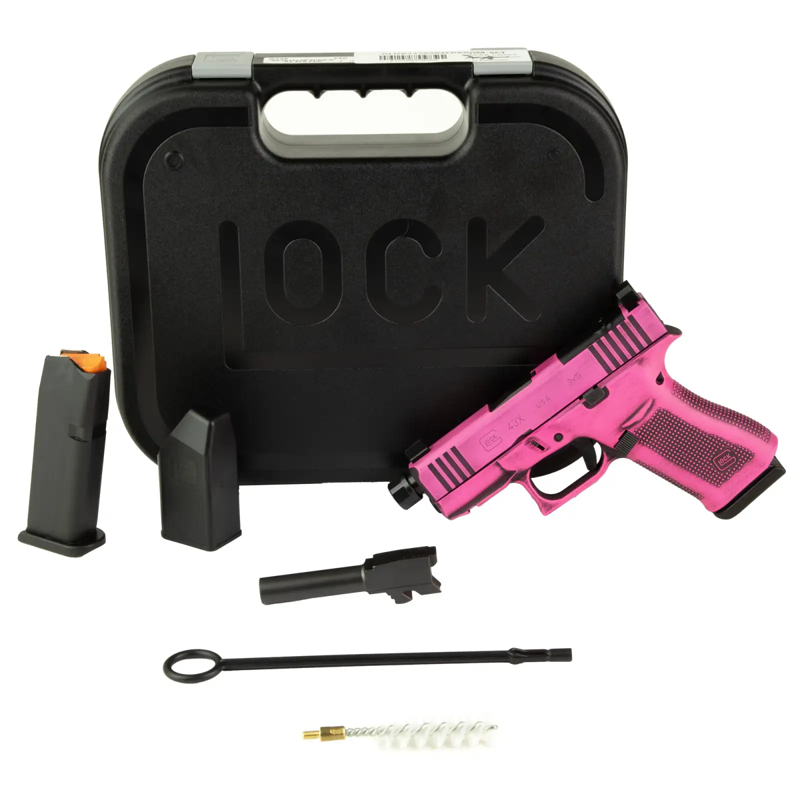 GLOCK 43X M.O.S., Semi-automatic, Striker Fired, Polymer Frame Pistol, Sub-Compact, 9MM, 3.92" Threaded Barrel, 1/2X28 Thread Pitch, Custom Bubblegum Cerakote Finish by Shark Coast Tactical, Pink, Fixed Sights, 10 Rounds, 2 Magazines UX4350204FRBBGM-SCT