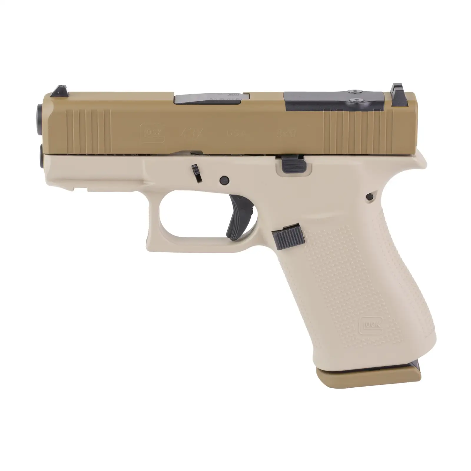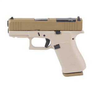 GLOCK 43X M.O.S., Semi-automatic, Striker Fired, Polymer Frame Pistol, Sub-Compact, 9MM, 3.41" Barrel, Custom Two-Toned Tan Cerakote Finish by Shark Coast Tactical, Fixed Sights, 10 Rounds, 2 Magazines UX4350204FR2TTAN-SCT