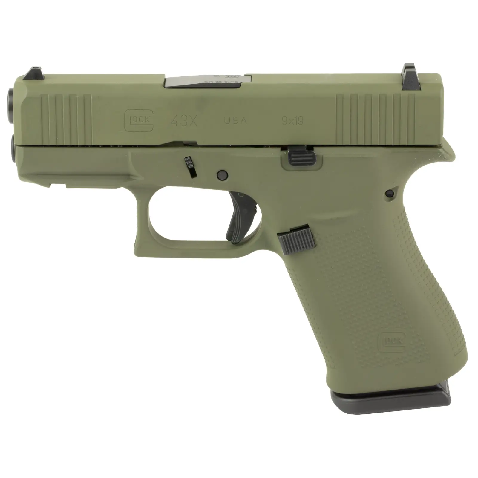 GLOCK, 43X, Semi-automatic, Striker Fired, Sub-Compact, 9MM, 3.41", Olive Drab Green, 10 Rounds, 2 Magazines, Fixed Sights, Polymer, Skydas Cerakote